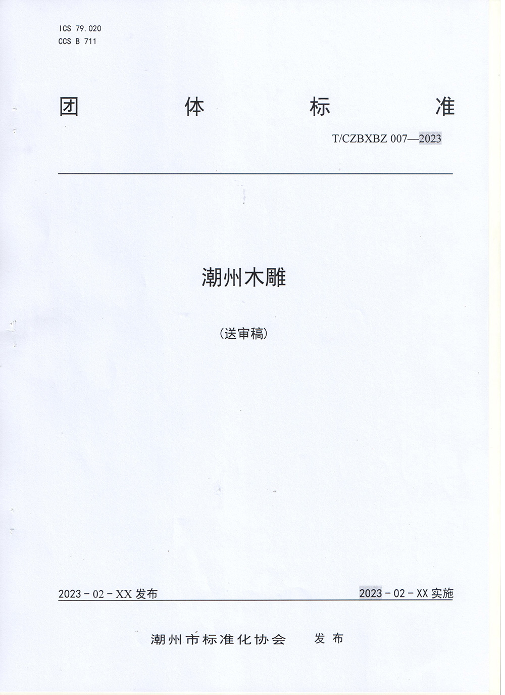 2023年2月15日下午,在位于潮州市湘桥区新洋路尾西湖工业城A区的“潮州市传统工艺研究会”主楼会议室,召开了由潮州市传统工艺研究会主导起草的《潮州木雕》团体标准通过审定会议。