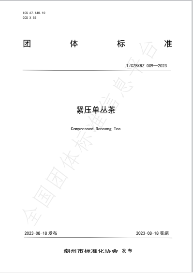 2023年8月17日上午,由潮州市食品检验检测中心主导起草制订、潮州市标准化协会发布的《紧压单丛茶》团体标准,通过了专家技术内容审定。