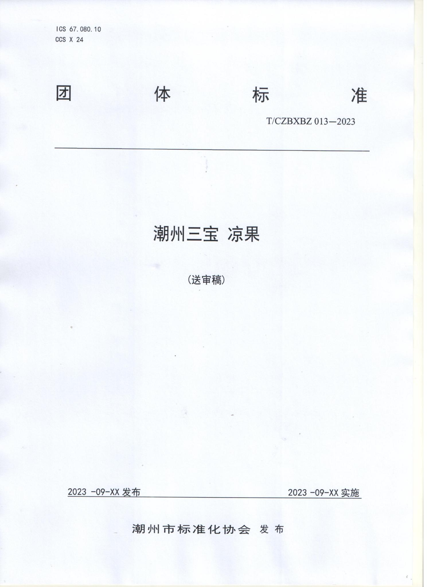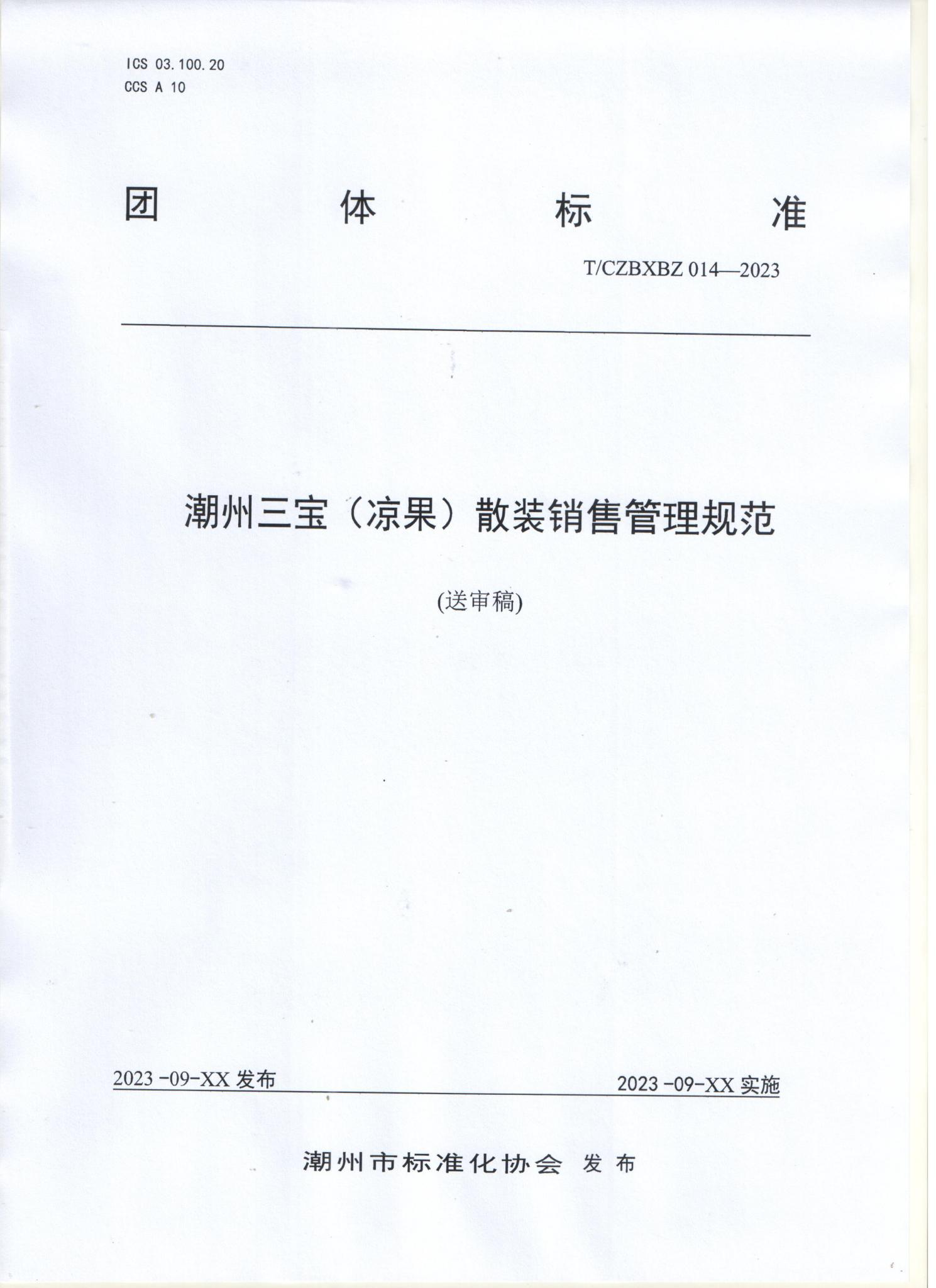 2023年10月20日上午,由潮州市标准化协会发布的《潮州三宝(凉果)》、《潮州三宝(凉果)散装销售管理规范》团体标准(送审稿),通过了专家审定。